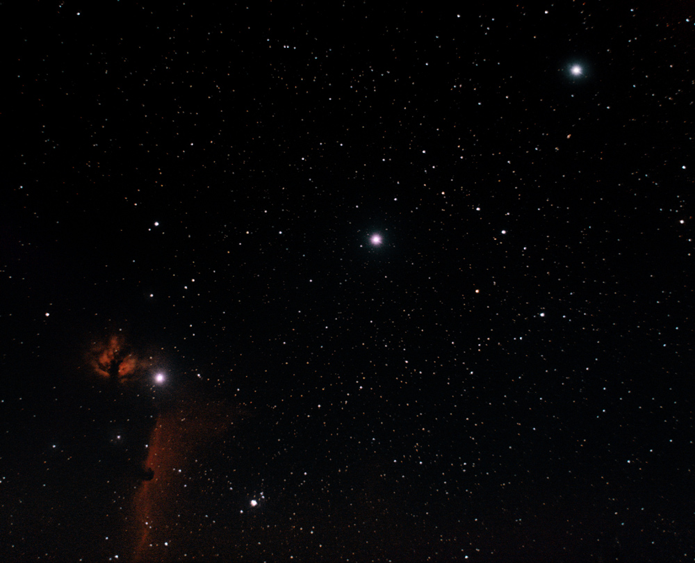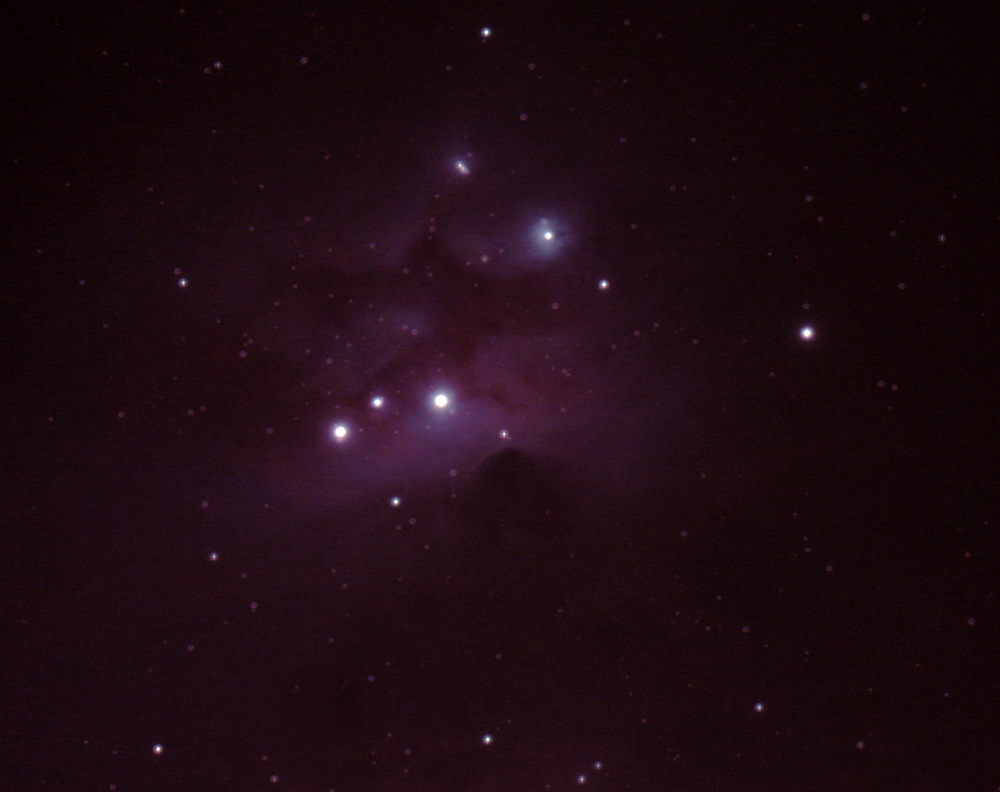 The belt of Orion. 3 pane mosaic. Modified Canon 350D on a WO80mm refractor. EQ6 mount. 3 x 8 x 4 minutes @ f7 800ASA