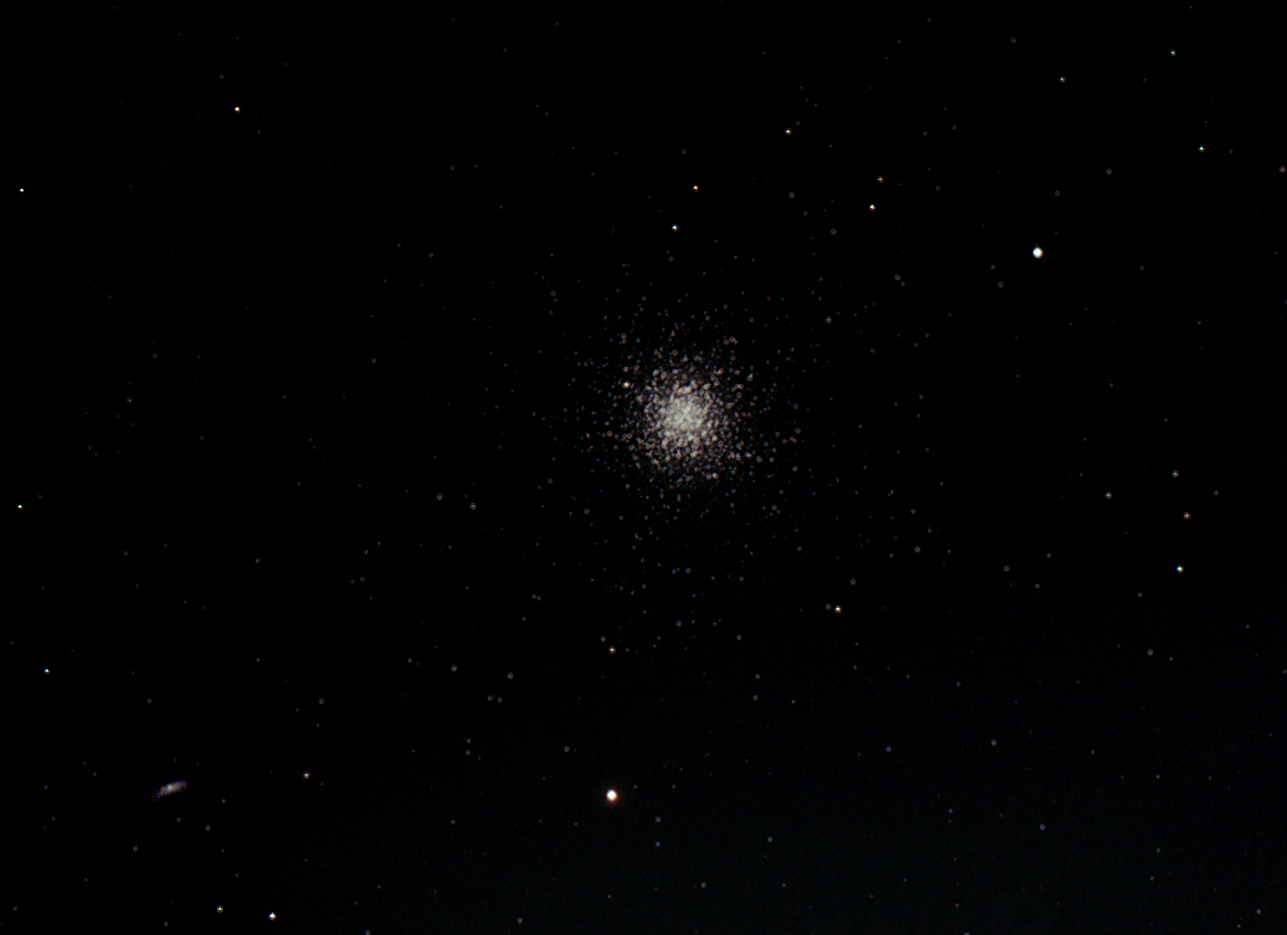 M13 in Hercules with galaxy NGC6207 (bottom left). Modified Canon 350D on a MN190. EQ6 mount. 6 x 2 minutes @ f5.3 800ASA |