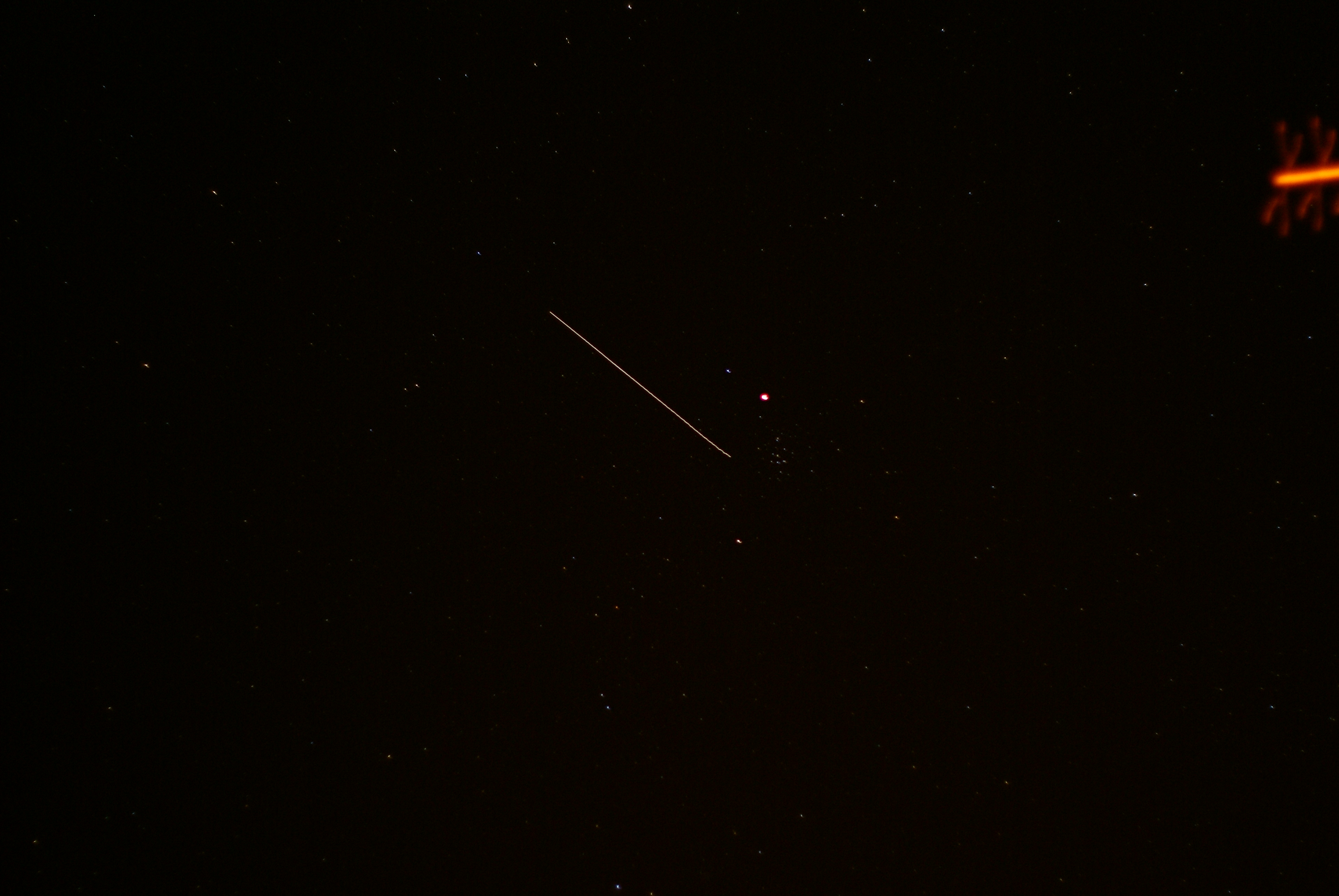 Mars near Praesepe and a satellite UARS (Upper Atmosphere Research Satellite, deployed from the Space Shuttle on mission STS-48). Image was captured on 16th April 2010 22:06